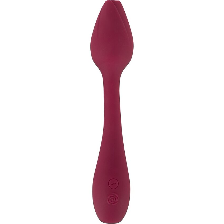 Vibrator Rosenrot Rose G Spot cu cap flexibil, 10 moduri de vibraţie, cu acumulator USB şi rezistent la apă. Suprafaţă mătăsos din silicon, lungime necondiționată 20 cm, calibru 4 cm. Design tip trandafir închis pentru stimulare precisă a punctului G şi clitorisului.