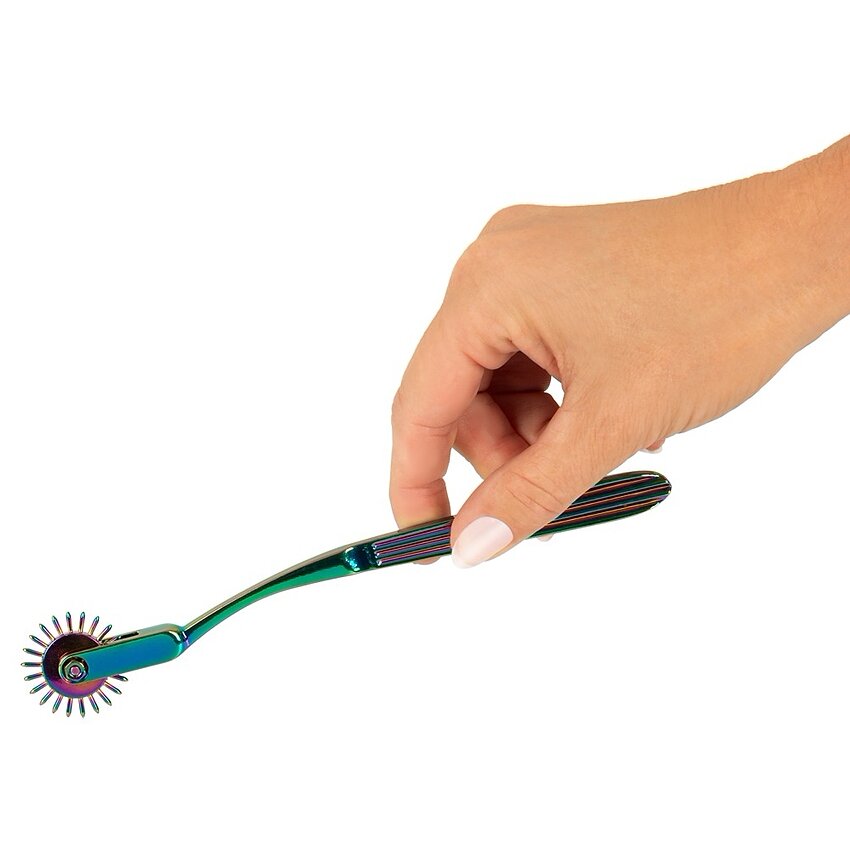 Roată pinwheel din metal, finisaj curcubeu, pentru control precis al intensităţii prin rulare pe piele. Ansamblu de prindere ergonomic, ace de 6 mm pentru senzaţii de la delicate la intense. Compactă şi uşor de întreţinut.