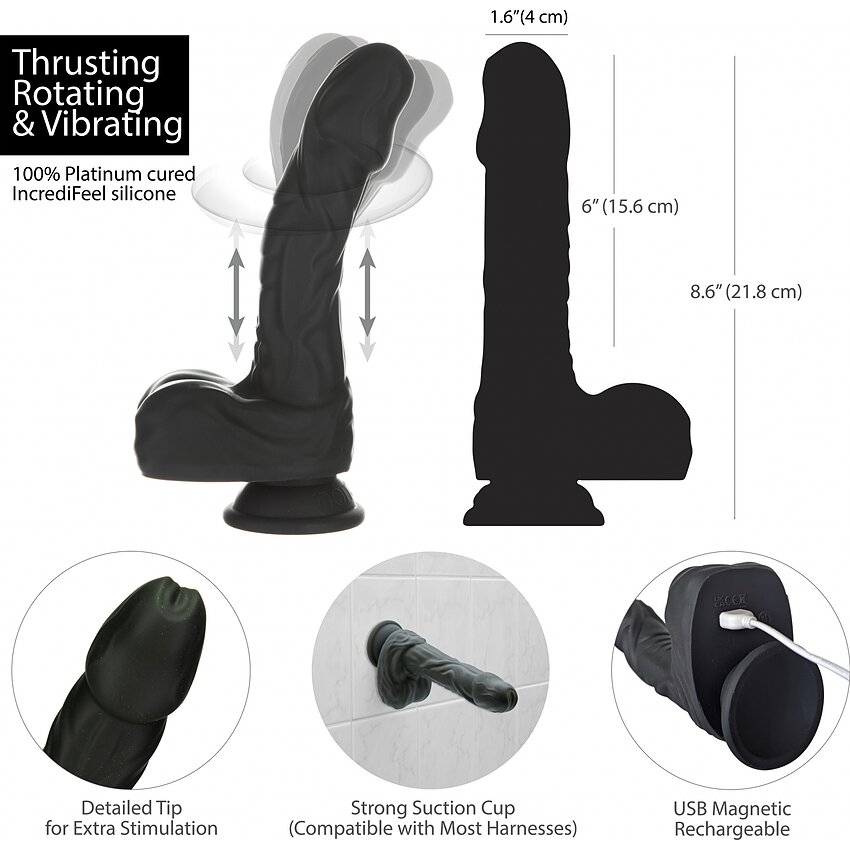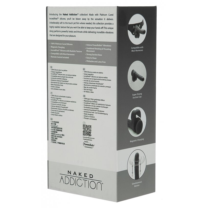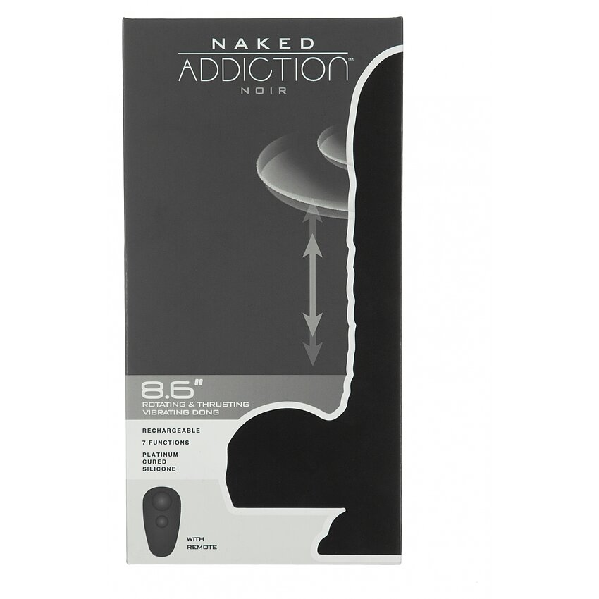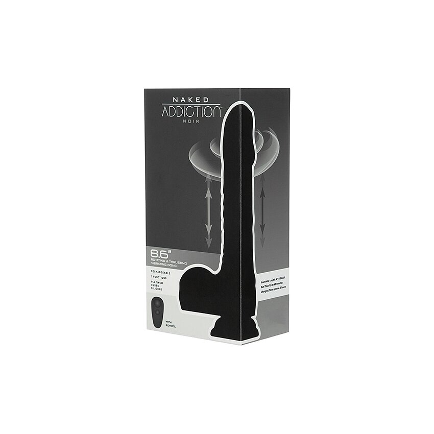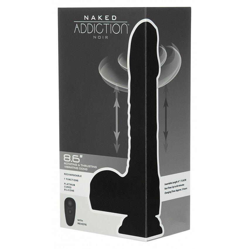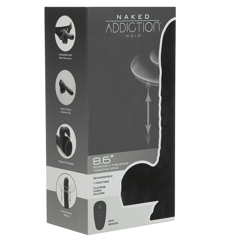 Naked Addiction 23 cm, Vibrator Rotativ și De împingere Negru