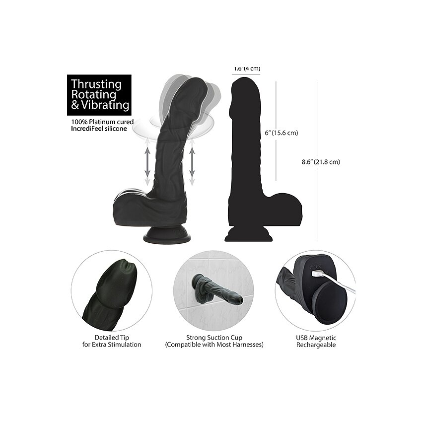 Descoperiți un vibrator solid conceput pentru varietate și control. Capul rotativ, mișcarea de împingere și vibrațiile pot fi folosite separat sau combinate pentru stimulări diferite, fără efort manual.