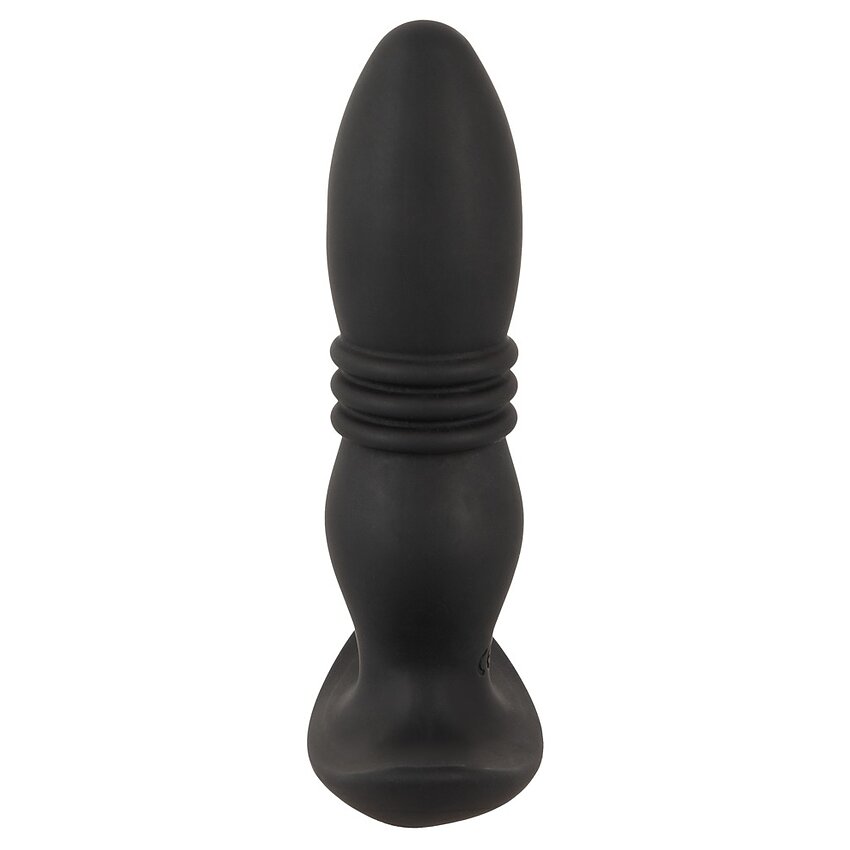 Plug stimulator ANOS cu funcţie de împingere: 10 moduri de vibraţie, 6 chipuri de împingere, reîncărcabil, telecomandă cu rază 5 m. Vârf conic soft-touch, bază lată pentru siguranţă. Ideal pentru stimulare anală şi control flexibil.