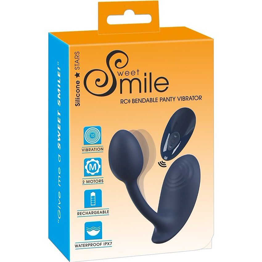Panty Flexibil Sweet Smile este conceput pentru purtare discretă în lenjerie, punând la dispoziție stârnire simultană internă și externă prin cele două motoare independente. Forma pliabilă se potrivește mișcărilor corpului, iar partea externă se aliniază grațios la zona clitoridiană pentru stabilitate în momentul purtării.