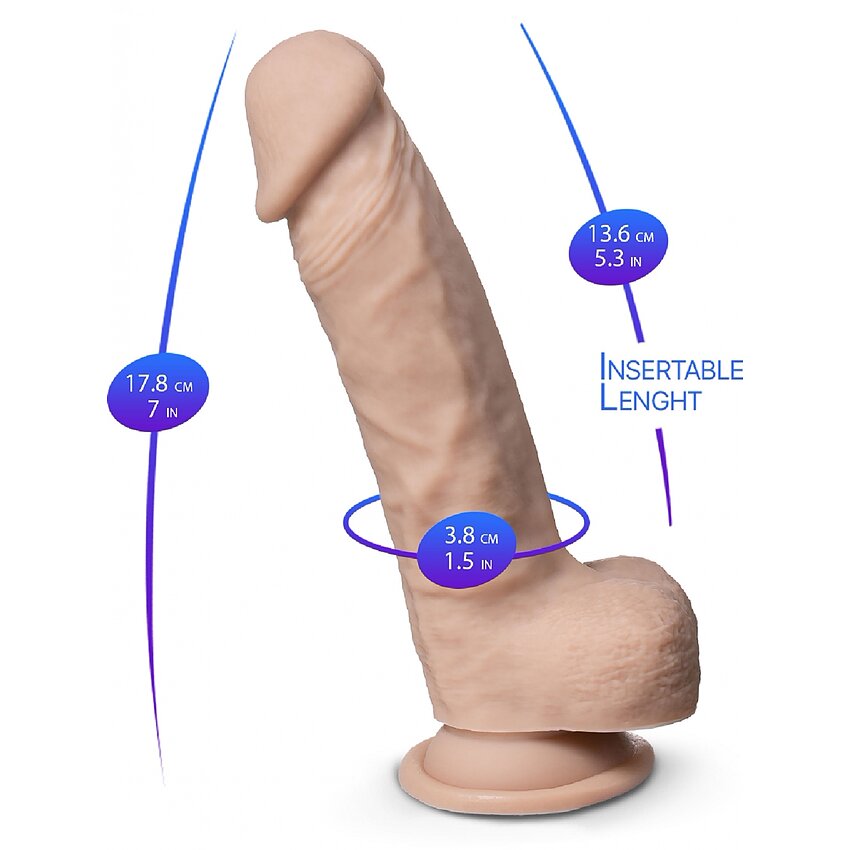 Lungime Totală: 17.8 cm Lungime Inserabilă: 13.6 cm Diametru: 3.8 cm Culoare: Natural Material: Silicon, Silexpan Livrare: Discreta Formă Anatomică Are Ventuză Brand:Silexd