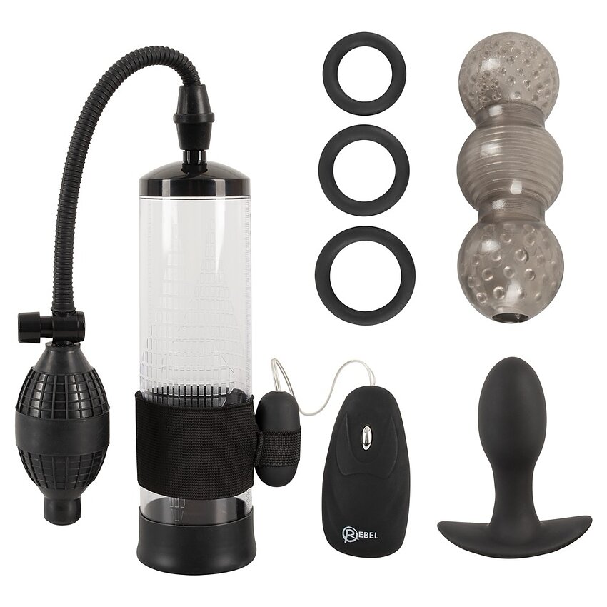 Beneficii și atribute: - Pachet complet, 7 piese pentru antrenament și varietate - Pompă măsurabilă pentru urmărirea progresului și control al vacuumului - 12 feluri de vibrație la vibratorul inserabil (telecomandă cu fir) - 20 moduri la plugul vibrat; reîncărcabil și tenace la apă - Masturbator extensibil cu texturi interne pentru stârnire intensă - 3 inele flexibile pentru sprijinire și fermitate - Materiale mixte pentru durabilitate și ștergere facilă Bunul are nevoie de 3 baterii in compus AAA care vor fi adaugate in cos impreuna cu Rebel Set 7-în-1: Pompă Măsurabilă, 20 Moduri Vibrații Negru.