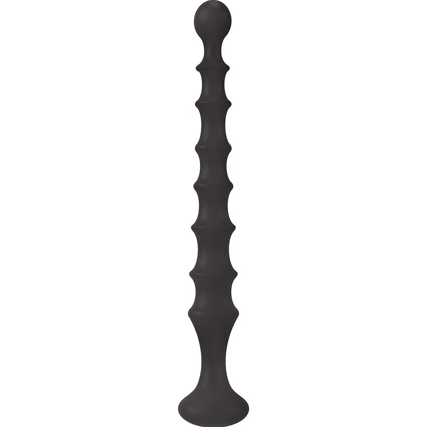 Beneficii și atribute concrete: - Silicon catifelat, elastic pentru confort și adaptare - Textură canelată pentru stimulare amplificată - Mărgea terminală pentru inserare ghidată - Mâner lat și robust pentru control precis - Mărimi exacte: extindere nealterată 26.9 cm, inserabilă 24 cm, calibru mărgea 2.5-3.2 cm - Greutate indicativă: 123 g