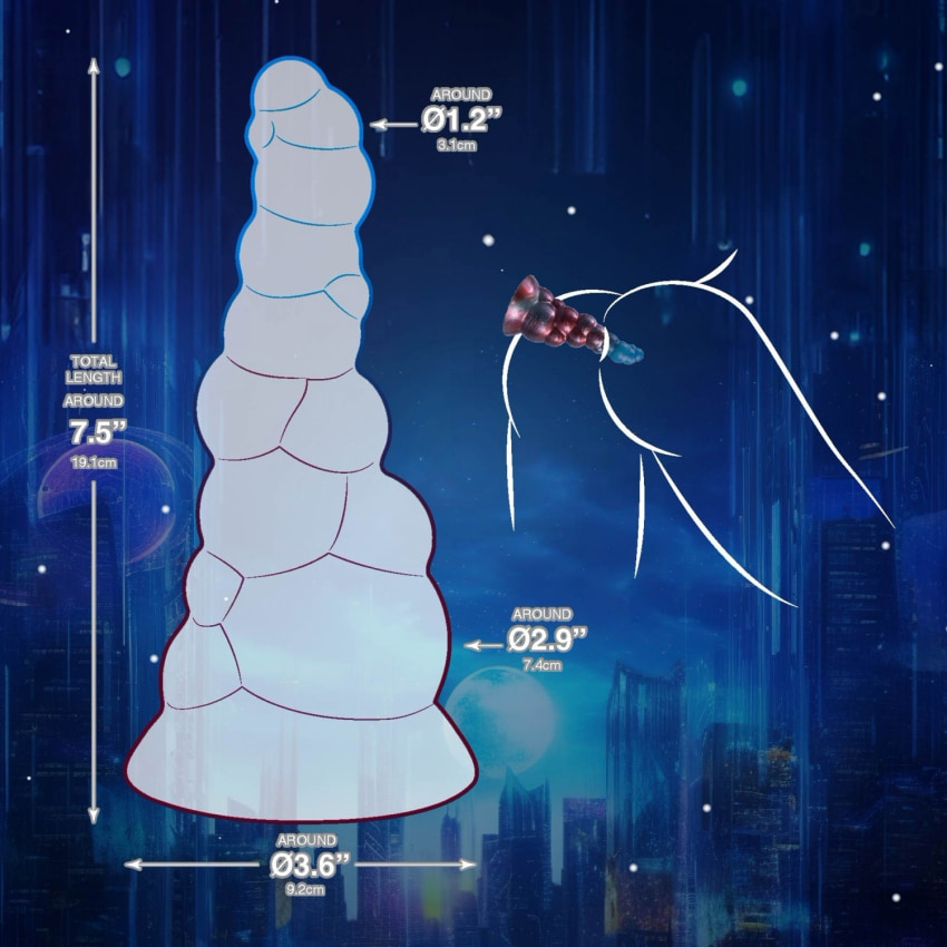Dildo NMC Monster, 19 cm, din silicon lichid de calitate, cu suprafață netedă și concluzie perlat. Flexibil, cu sucțiune robustă pentru stabilizare sigură pe suprafețe plane. Textură delicată și întreținere simplă.