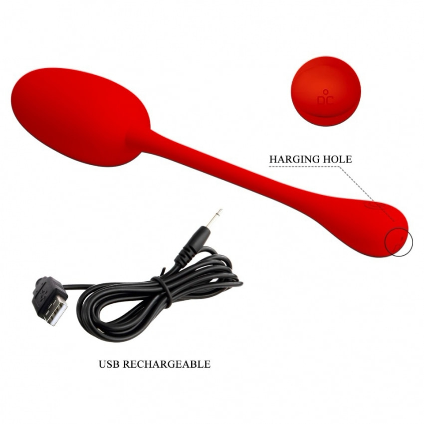 Ou vibrator compact Pretty Love Knucker, reîncărcabil, din silicon foarte moale. 12 chipuri de vibraţie pentru reglaje precise. Extindere integrală 18,6 cm; inserabilă 7,2 cm; calibru 3,4 cm. Colorit roşu.